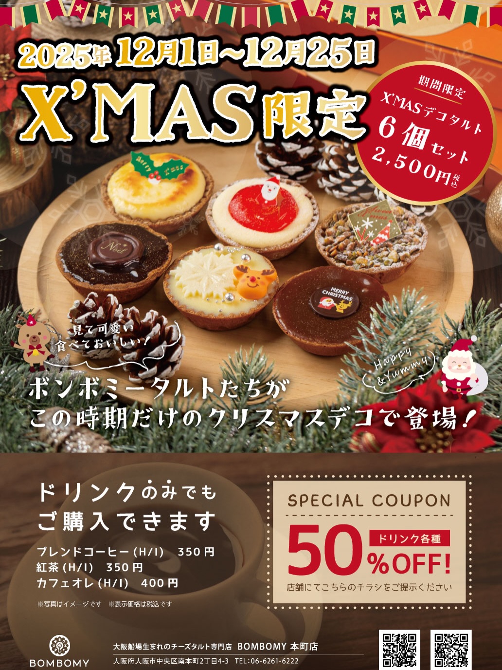 一年に一度の特別な季節に、BOMBOMYならではのクリスマスタルトで心温まるひとときをお楽しみください。
