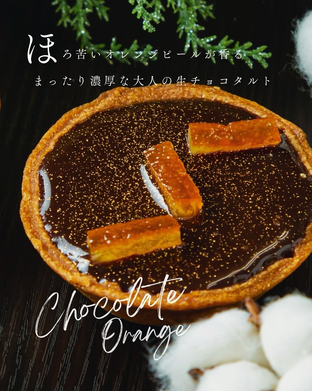 🧡生チョコオレンジ🧡 ほろ苦いオレンジピールが香る まったり濃厚な大人のスイート生チョコタルト🍫 オレンジとチョコは相性ピッタリ!