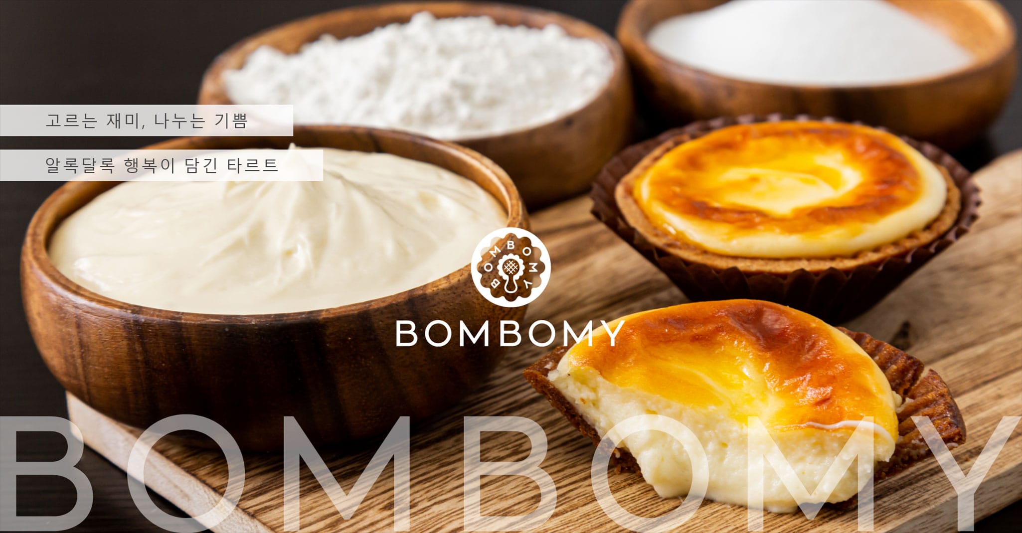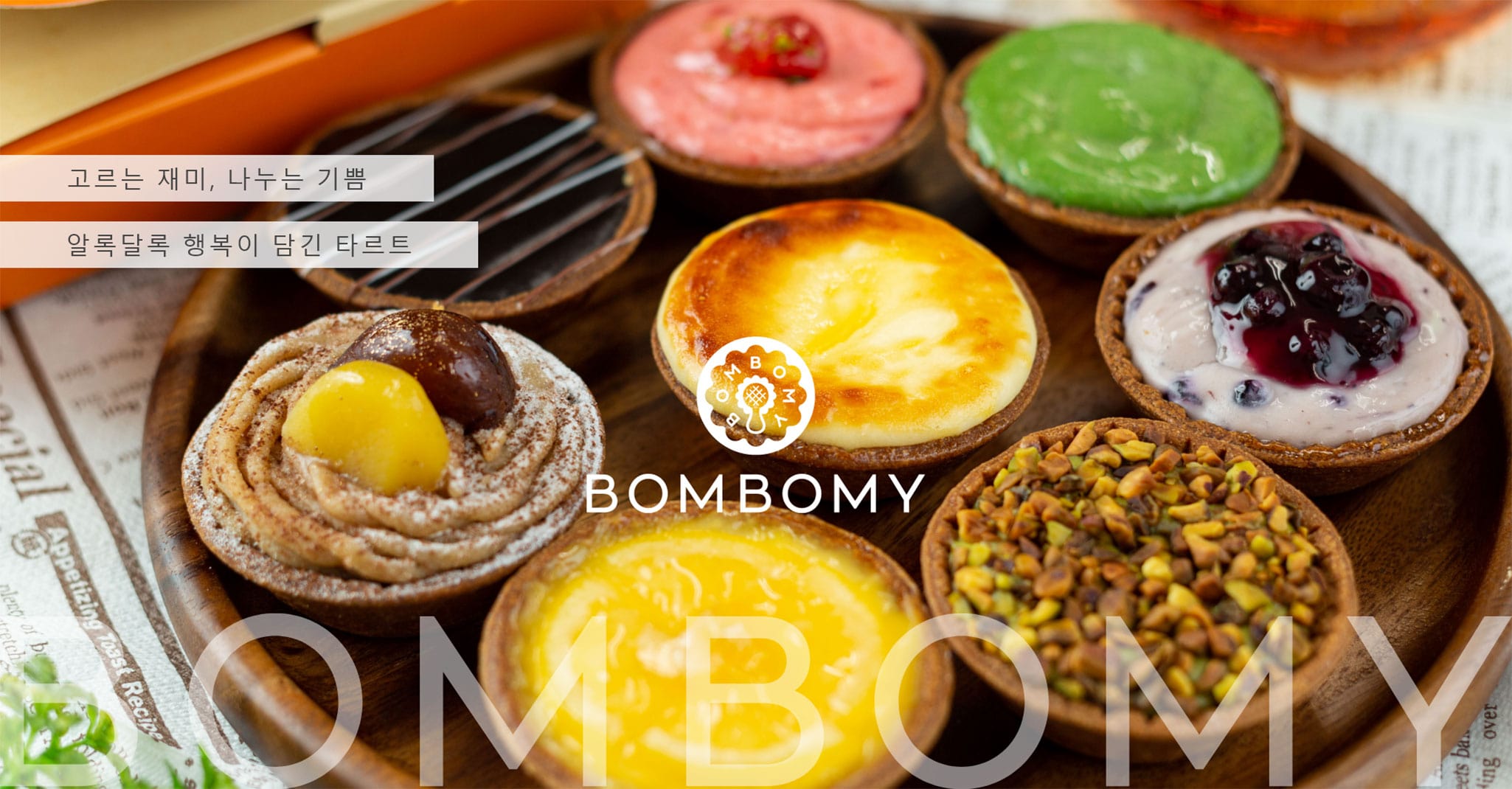 BOMBOMY(봄봄이)는 오사카 센바에 있는 치즈 타르트 전문점이다. 파티시에가 하나하나 정성껏 구워낸 타르트는 보기에도 아름답고, 입가에 미소를 머금게 하는 맛으로 가득 찬 특별한 일품이다. 소중한 사람과 함께 나누면 바쁜 일상도 마음이 따뜻해지는 시간으로 바뀝니다.